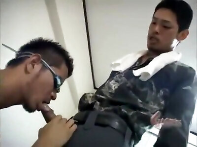 Japanese heterosexual hunk given a oral job
