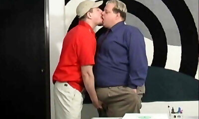 Chubby Daddy have fun with twink junior